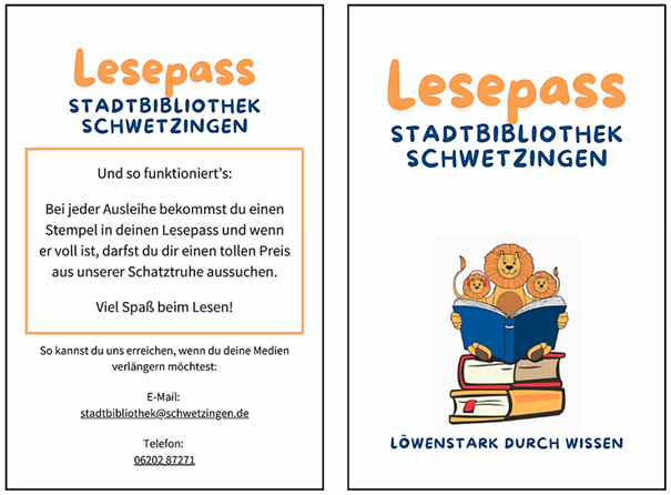 Für unsere kleinen Leselöwen gibt es auch den Lesepass. Bei jeder Ausleihe bekommt man einen Stempel und sobald 10 Stempel gesammelt wurden, dürfen die fleißigen Leselöwen aus unserer Schatztruhe ihre Belohnung abholen. Wir freuen uns über alle, die mitmachen. Interesse geweckt? Dann holt euren Lesepass bei uns in der Stadtbibliothek ab. Sprecht uns einfach an!